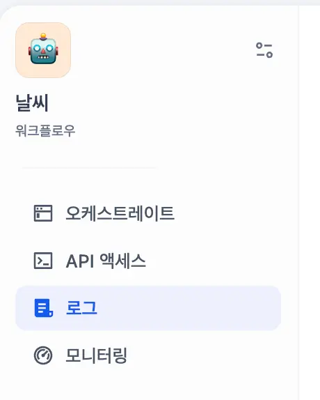 워크플로우 왼쪽의 “로그”를 클릭하세요.