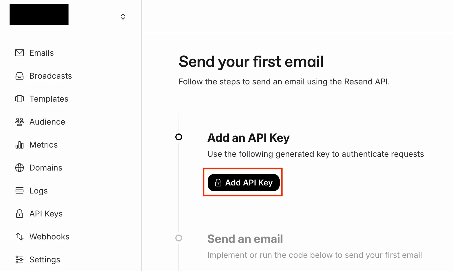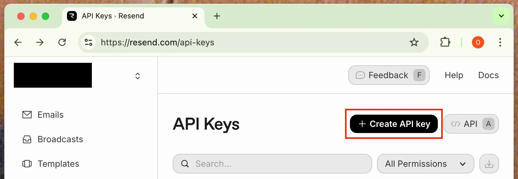 https://resend.com/ 에 접속해 API 키를 발급받습니다.