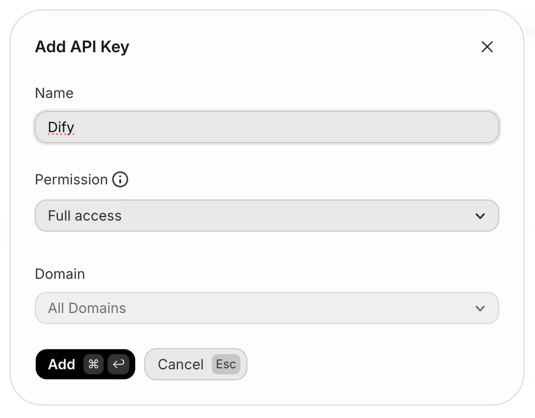 Name에 Dify를 입력하고 “Add” 버튼을 클릭합니다.