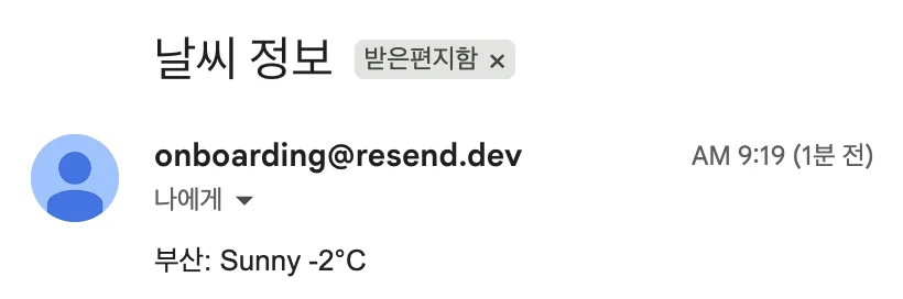 이번에는 자동으로 실행하고 메일로 결과를 보내주는 워크플로우를 만들어보겠습니다. 아침마다 날씨 정보를 메일로 보내주는 워크플로우입니다.