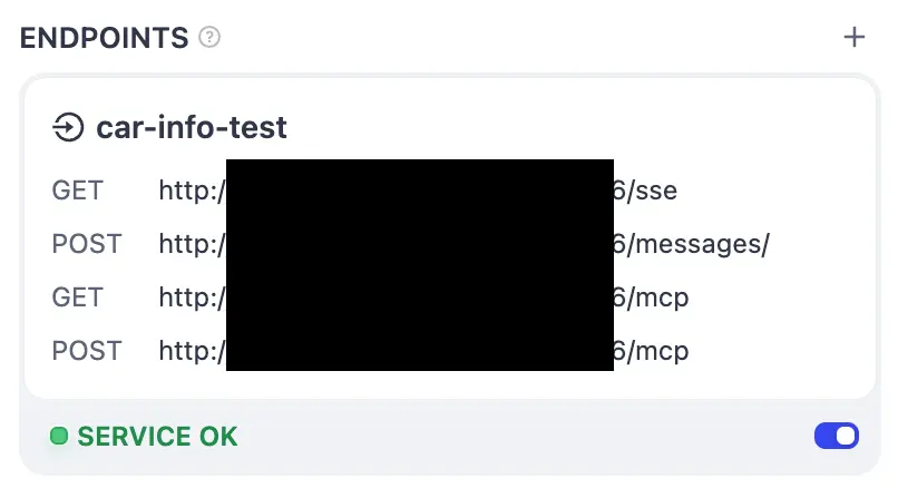 맨 아래의 POST http../mcp를 사용합니다. 호스트가 localhost라고 되어 있으면 외부에서 접속할 수 있는 주소로 바꿉니다(http, https도 확인합니다).