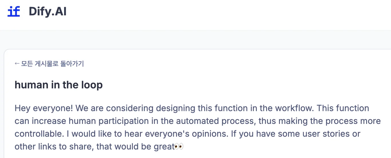 Q. Dify Human Input 노드는 언제 출시됐나요? 2026년 2월 11일 출시된 Dify 1.13.0에서 처음 공개됐습니다.