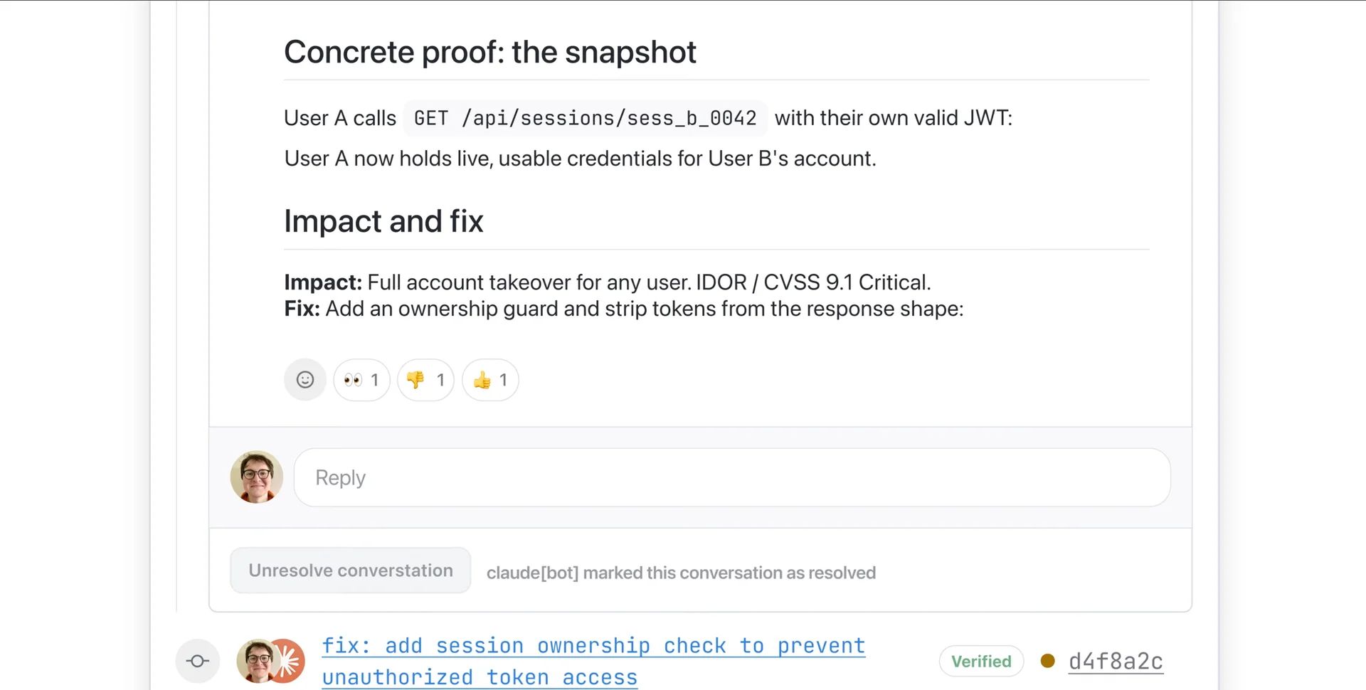 검증을 통과한 이슈들은 심각도에 따라 정렬됩니다. 최종적으로 개발자의 PR에는 하나의 통합 요약 코멘트와 각 이슈에 대한 인라인 코멘트가 달립니다. 개발자는 가장 중요한 문제부터 순서대로 확인할 수 있습니다.