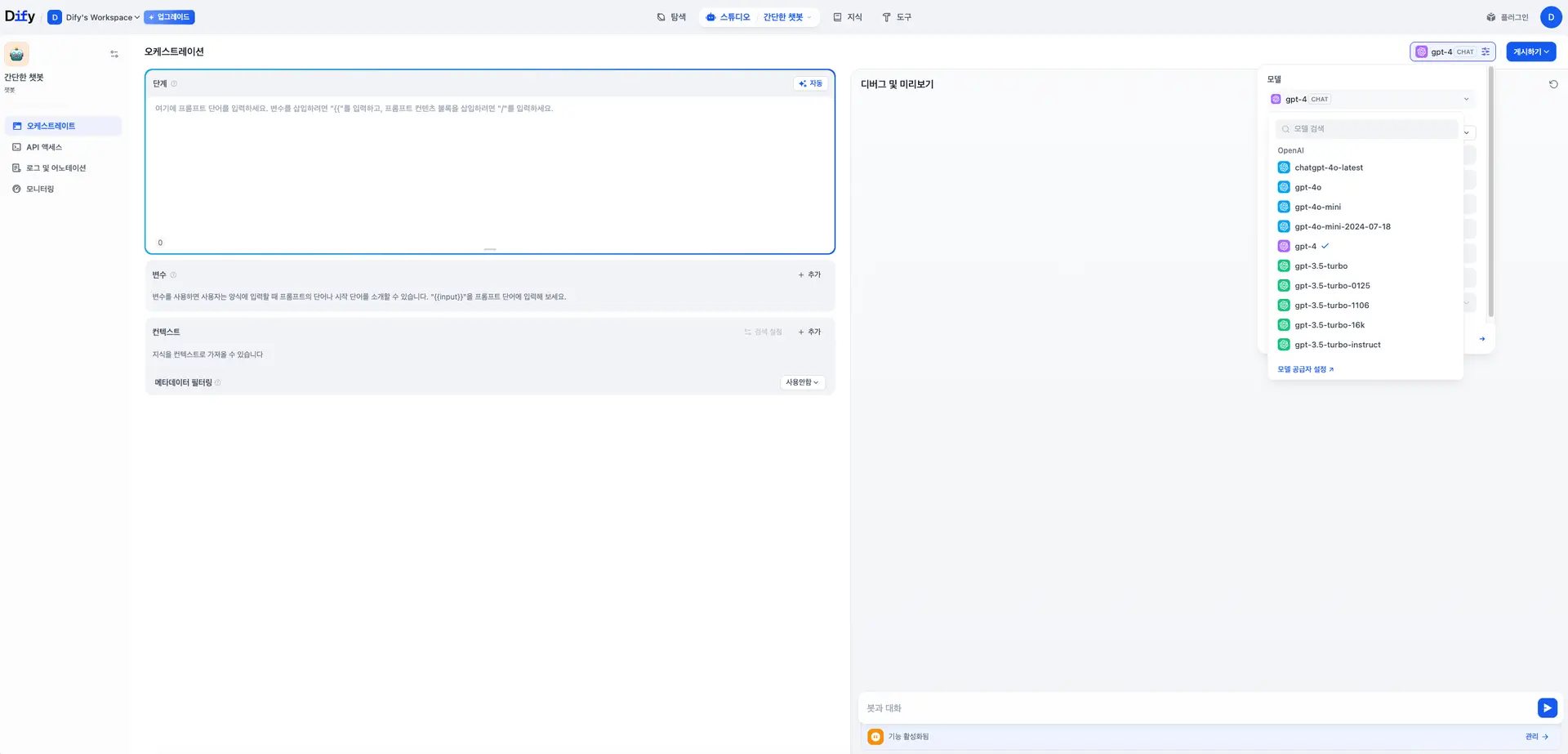 Dify 실습 (1): 간단한 챗봇 만들기