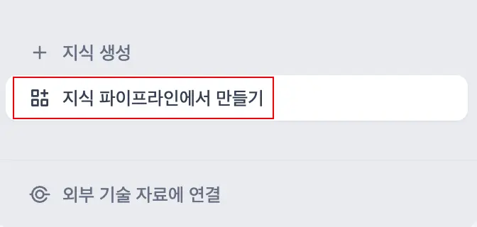 지식 탭에서 ‘지식 파이프라인에서 만들기’ 버튼을 클릭합니다.