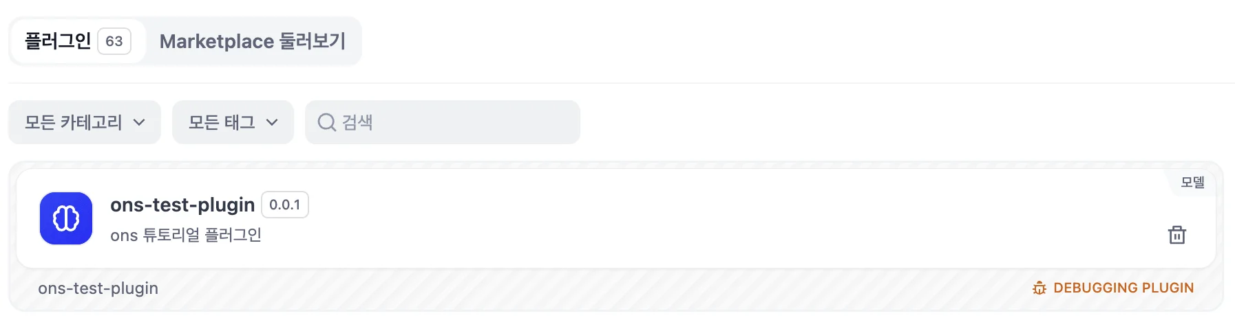 INFO:dify_plugin.plugin:Installed model: ons-test-plugin다음 튜토리얼에서는 본격적으로 파이썬 코드와 모델 명세를 작성하겠습니다. 수고하셨습니다.