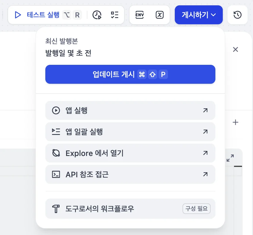 워크플로우 게시 메뉴에서 “도구로서의 워크플로우”를 클릭합니다.