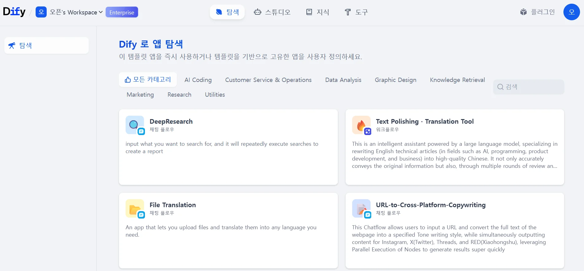 Dify 워크스페이스: 우리 팀만의 독립된 'AI 스케치북'