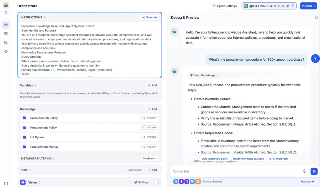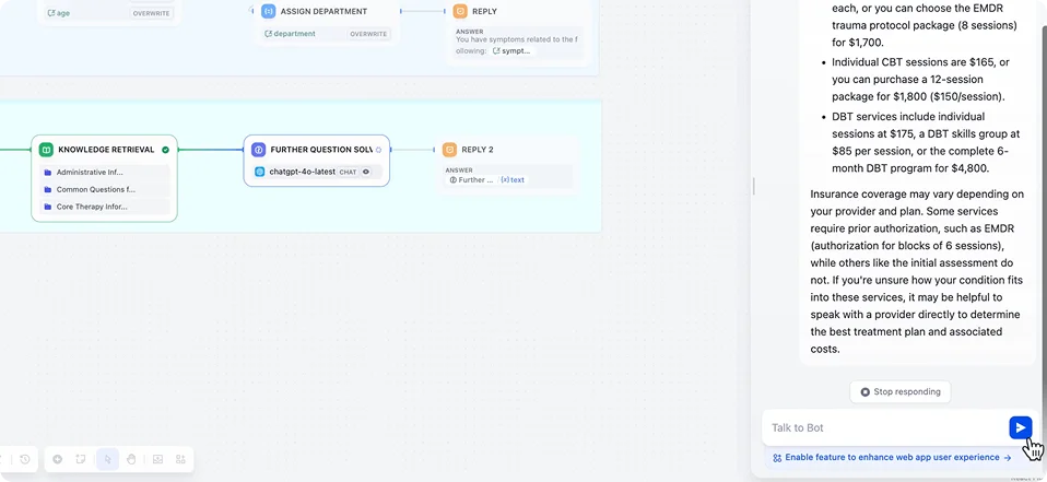 단순 질의응답을 넘어 '민원 분류 - 초안 작성 - 관련 부서 배정'으로 이어지는 Workflow 기능을 설계할 수 있습니다.