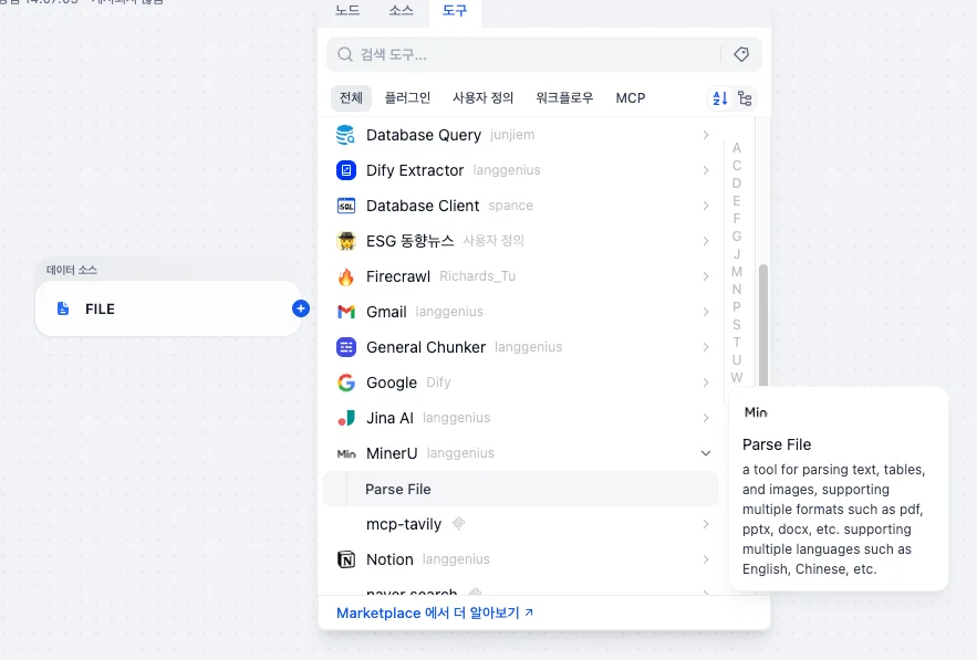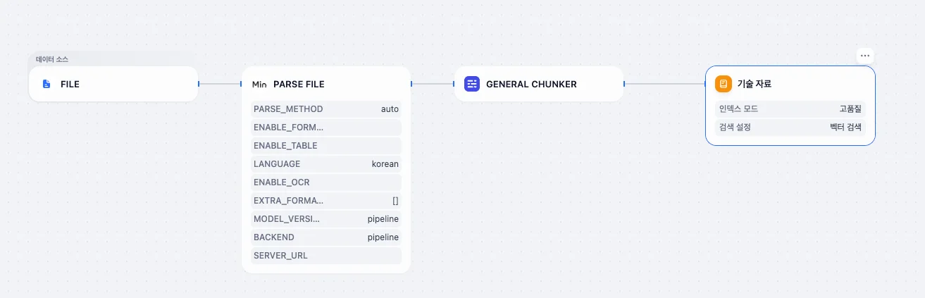 먼저 dify에 pdf 문서를 그대로 등록해서 자체 파싱 기능을 사용합니다.