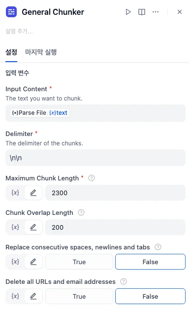 (청크 설정은 dify 자체 파싱 기능을 사용할 때와 동일하게 설정하겠습니다.)
